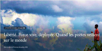 « Liberté, quand les poètes veillent sur le monde » Dans un contexte international marqué par les crises, les tensions et les remises en question des libertés fondamentales, la poésie demeure un espace singulier où la parole humaine peut continuer de s’exprimer, d’interroger le monde et de maintenir vivante…