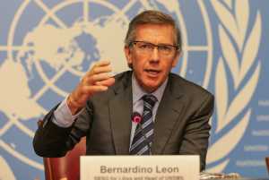 Bernardino Leon Publié le 05/03/2018 à 300 × 201 in Bernardino Leon ← Précédent Suivant → Mr. Bernardino Leon, Special Representative of the Secretary-General for Libya and Head of the United Nations Support Mission in Libya (UNSMIL) during a press conference at the Palais des Nations in Geneva, Switzerland.